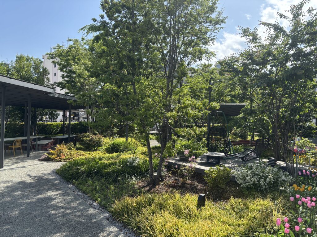 広い芝生で子どもが全力ダッシュ!椅子もたくさんあってママは座って見守れるのが最高です。門で区切られているから安心感もばっちり。しかもチェックイン前から遊べちゃいます♪
